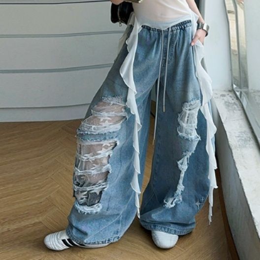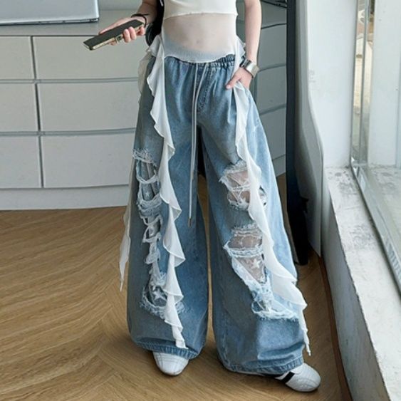 大胆なダメージ加工と立体的なフリルがサイドに施されており、動くたびに存在感を発揮します。
