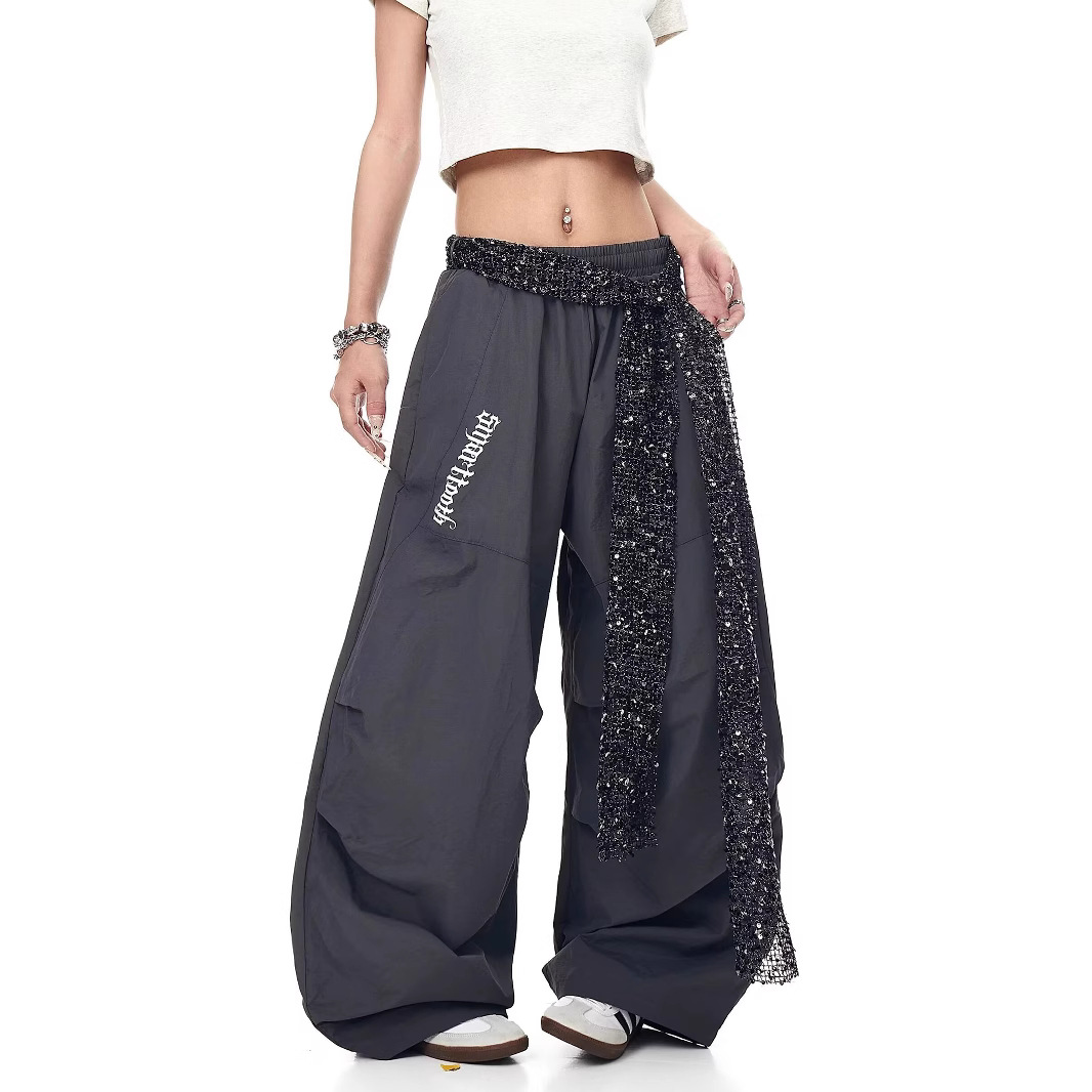 華やかなスパンコールベルトが目を引くダンス衣装向けのパンツです。