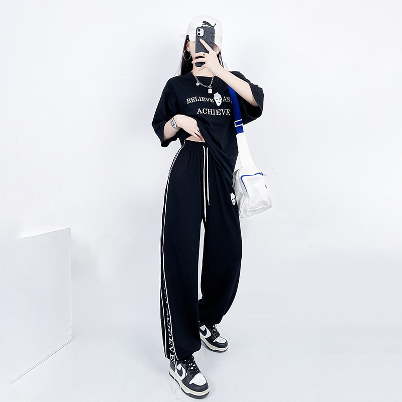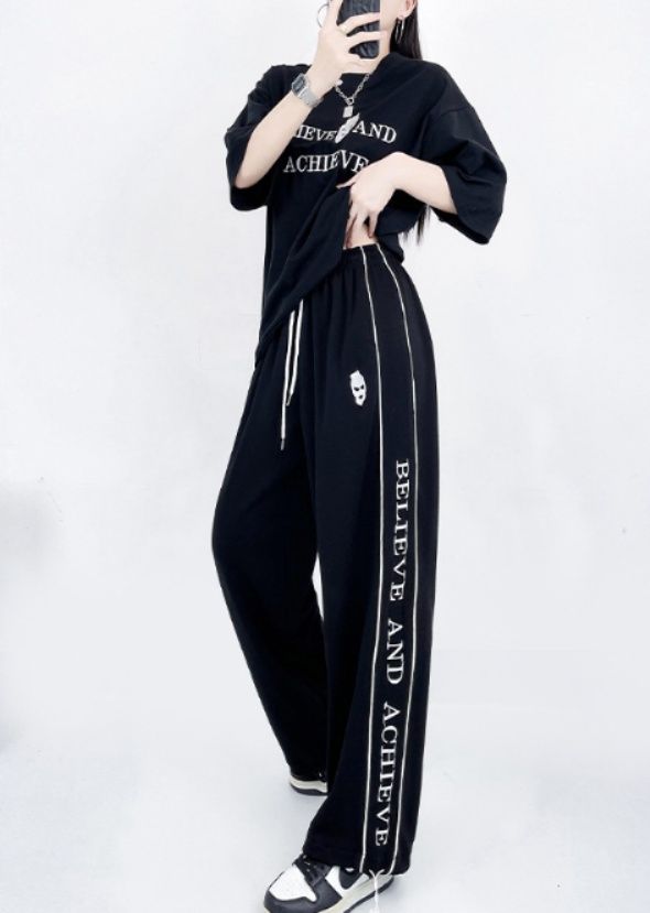 ゆったりとした半袖トップスとワイドシルエットのパンツは動きやすさも抜群で、練習から本番まで幅広く活躍します。
