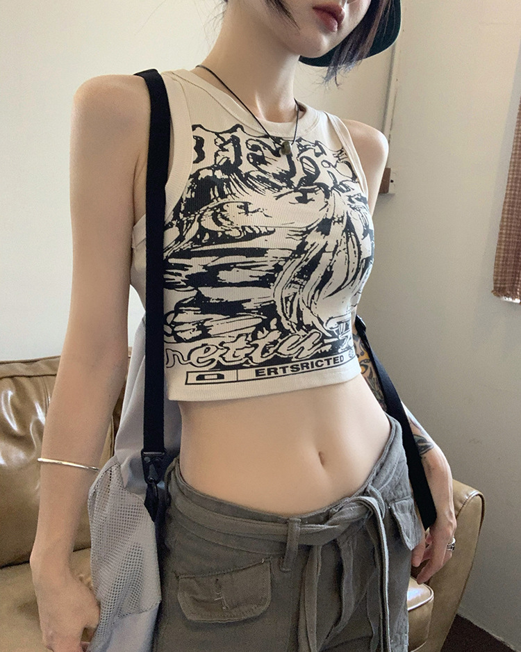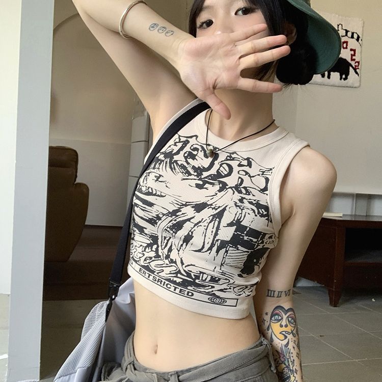 大胆なグラフィックアートが印象的なノースリーブタンクトップです。
