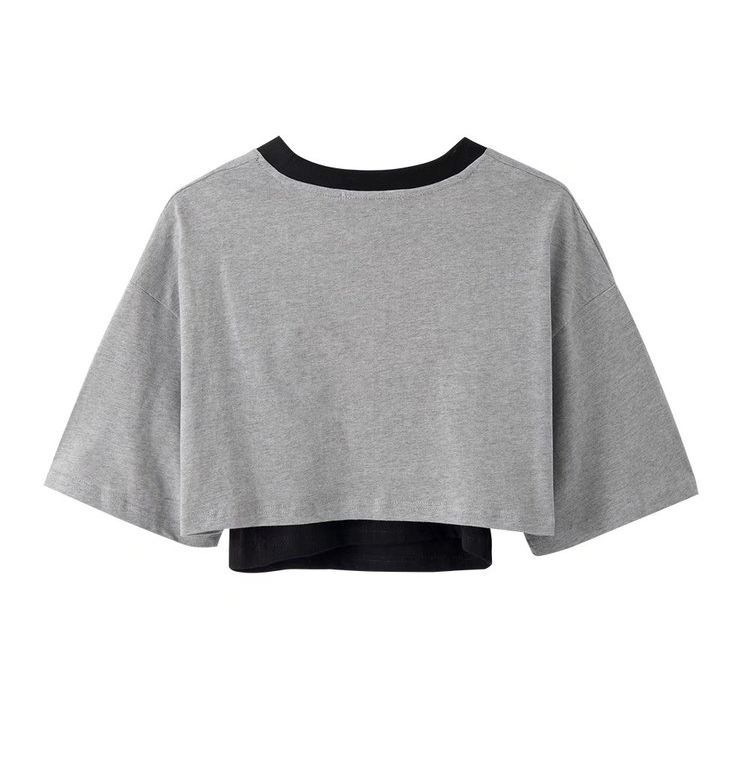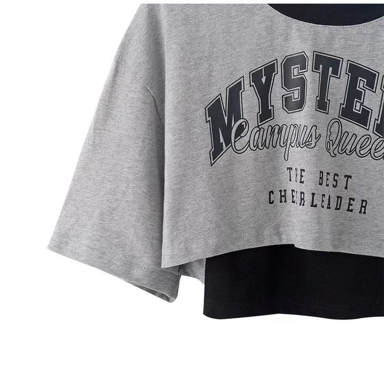重ね着風のデザインが特徴で、ショート丈のトップスに袖口と裾からインナーが覗くレイヤードスタイルを簡単に実現できます。