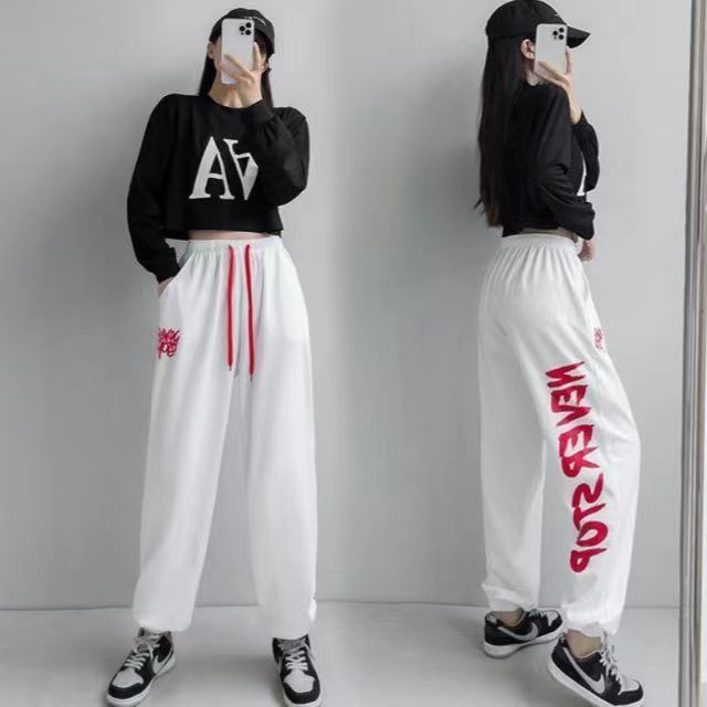 ストリート感あふれるロゴプリントが特徴的なダンス衣装のパンツです。