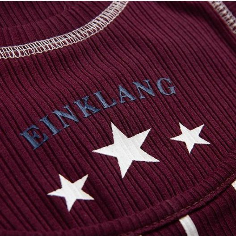 フロントには大胆なロゴプリントと星のモチーフを配置し、ストリート感あふれる仕上がりに。