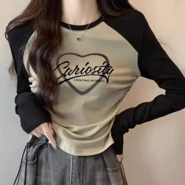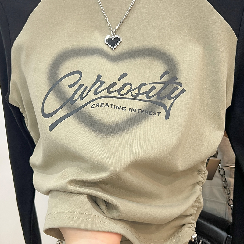 ハート柄とロゴがプリントされたカジュアルなダンス衣装のトップスです。