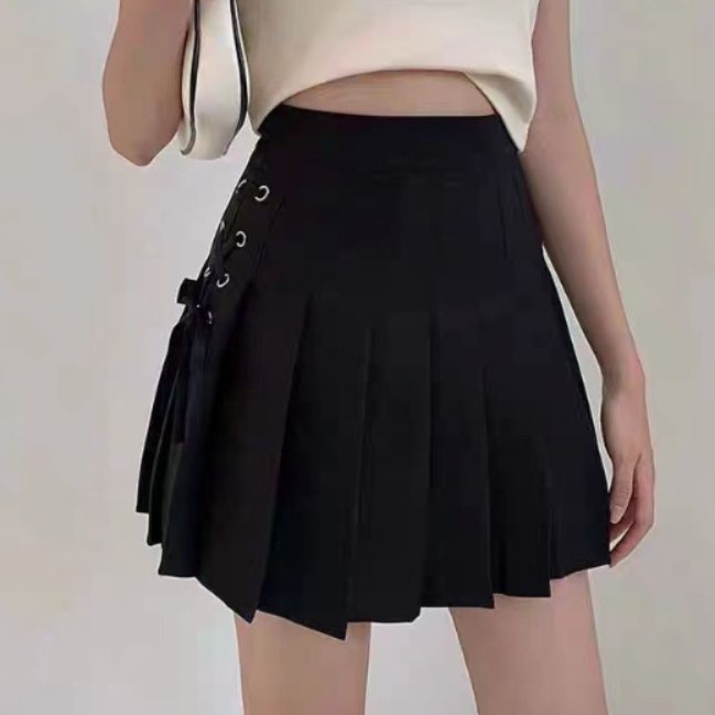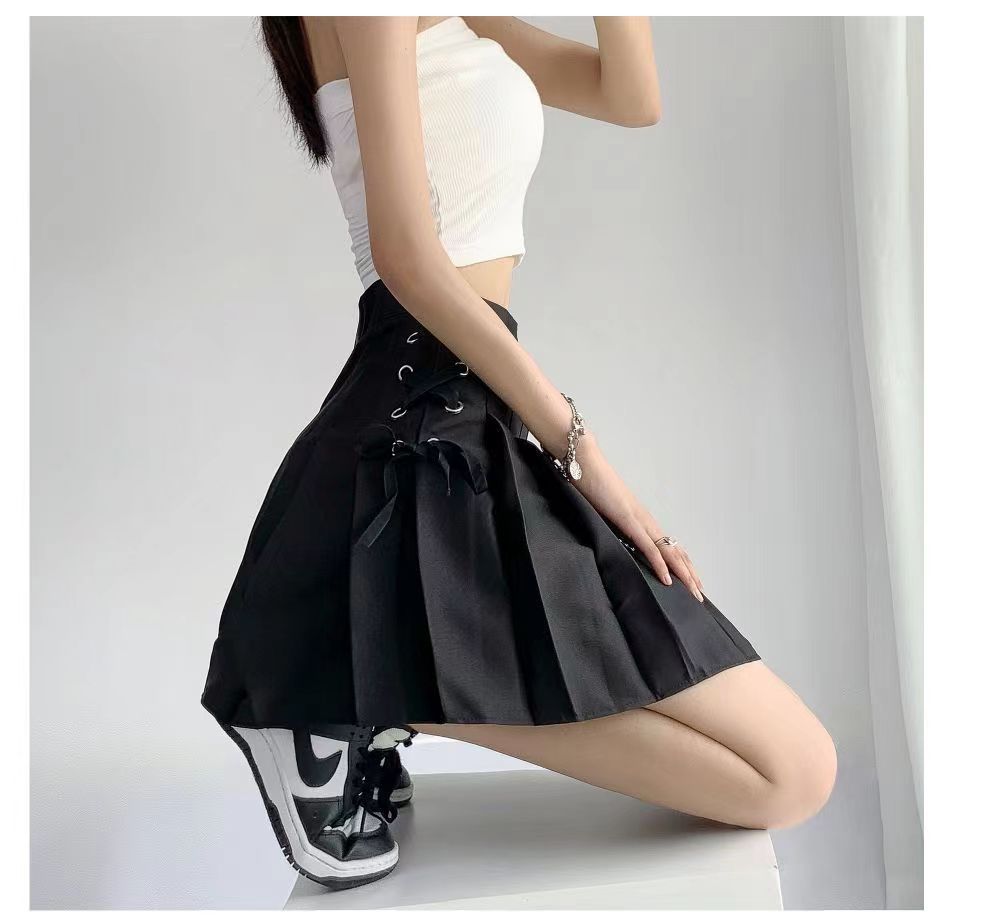 サイドの編み上げリボンがアクセントになったダンス衣装向けのプリーツスカートです。