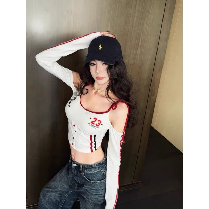 個性的な肩開きデザインが特徴的なダンス衣装向けトップスです。