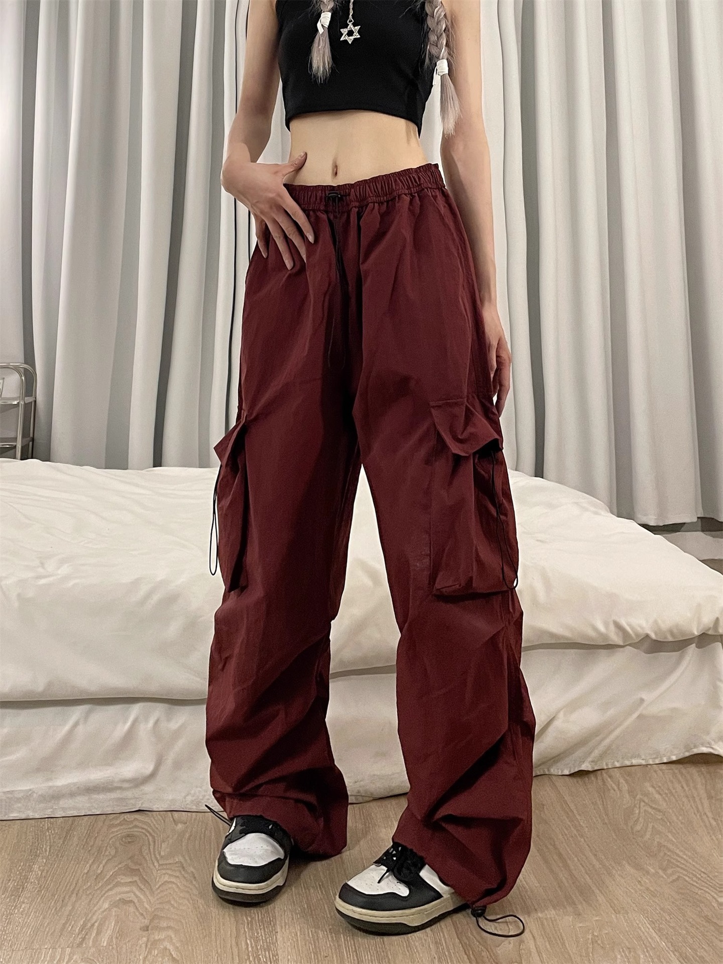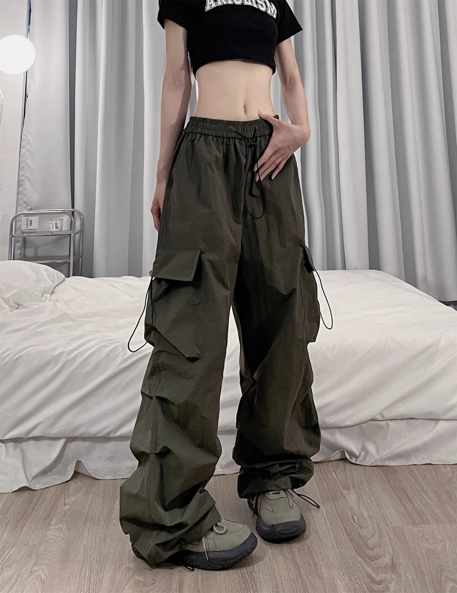 ゆったりとしたワイドシルエットで動きやすさを追求し、裾の調整紐でシルエット変化も楽しめます。