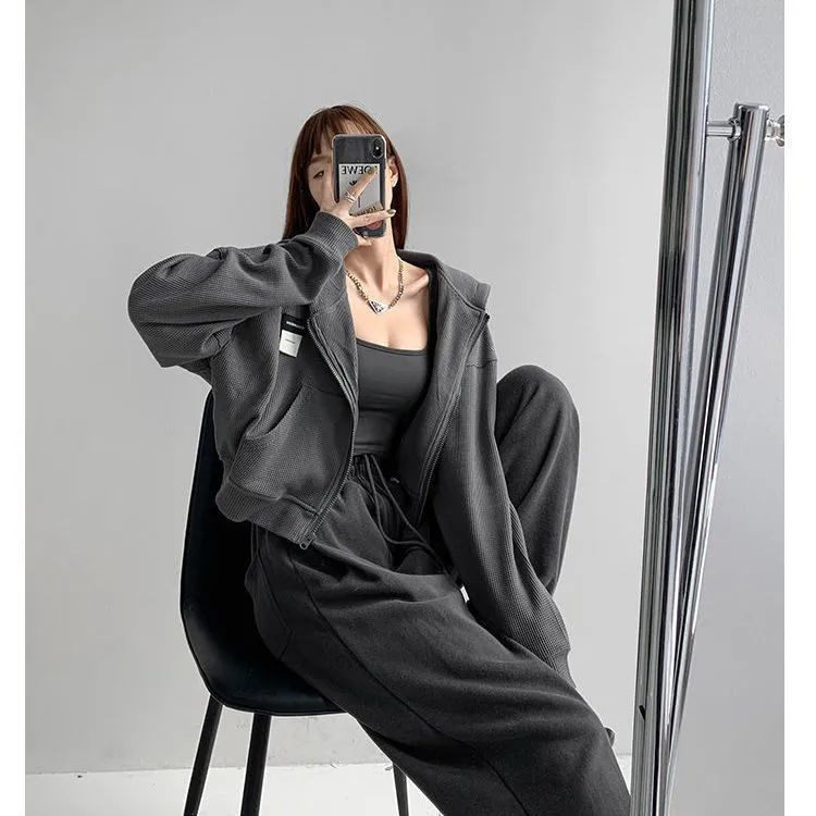 ショート丈のジャケットとゆったりとしたワイドパンツの組み合わせで、動きやすさと個性を両立させました。